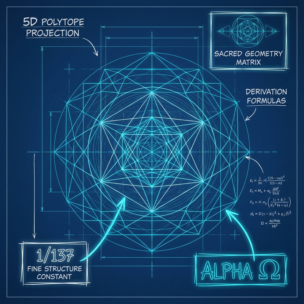 Combining the geometric ratios of the 5D anchor with the 4D communication surface and the 3D projection efficiency ():